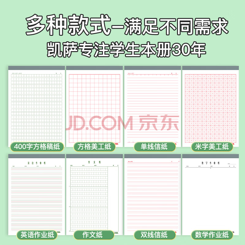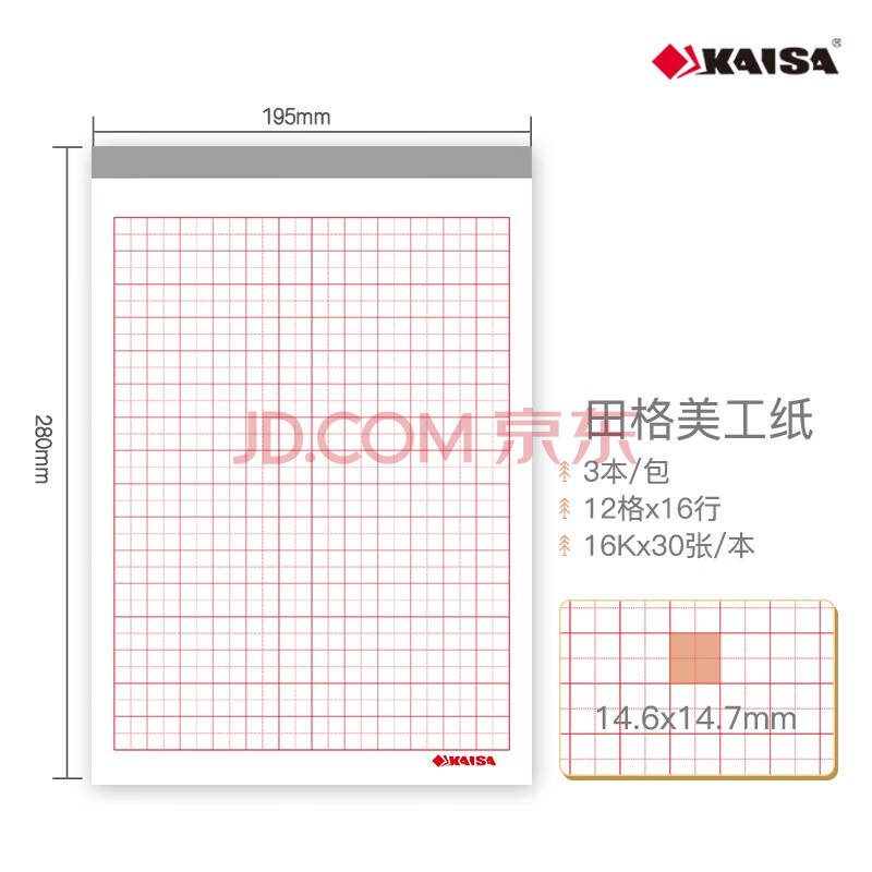 商品相册:凯萨(KAISA)16K/30张田字格美工纸3本装 硬笔书法练习本字帖作业纸加厚钢笔字练习本高中生田格本作品纸第