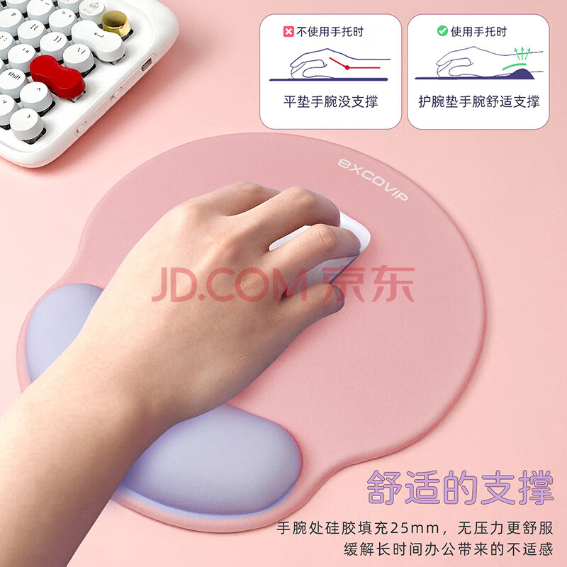 商品相册:宜适酷(EXCO)粉+紫拼色鼠标垫护腕大号硅胶柔软桌垫腕托女生笔记本电脑办公游戏手腕垫防滑鼠标垫男生9903第