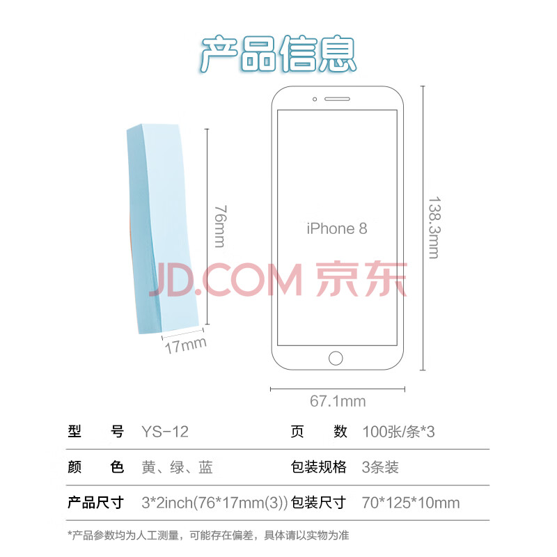 商品相册:晨光(M&G)文具彩色索引便利贴标签贴小号便签贴纸粘性小条标记书签贴3色76*17mm YS-12办公用品第