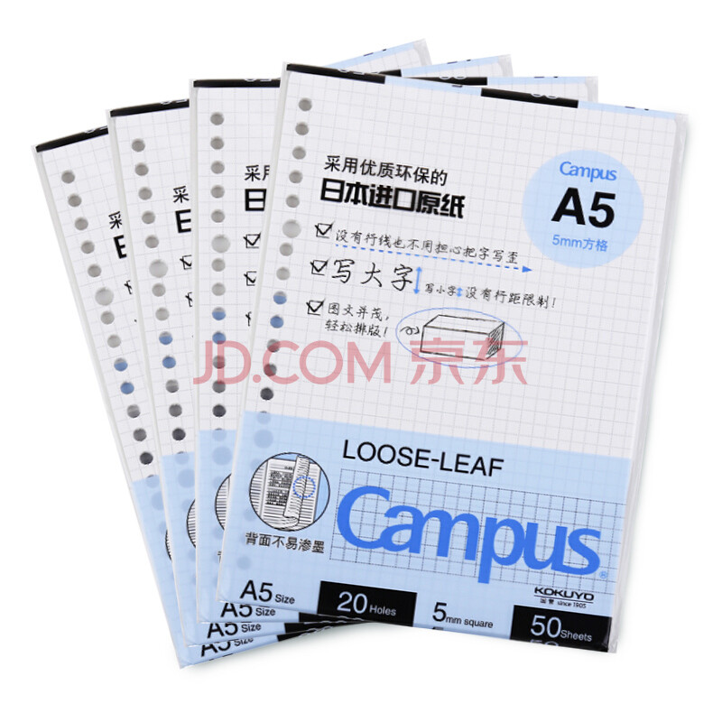 商品相册:国誉(KOKUYO)(KOKUYO)A5活页纸Campus活页本替芯笔记本子活页纸内页 5mm方格 50张/本 4本 WCN-CLL3514N第