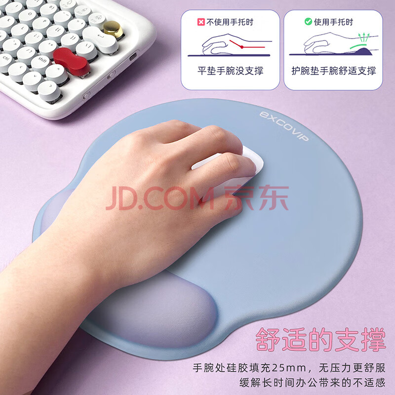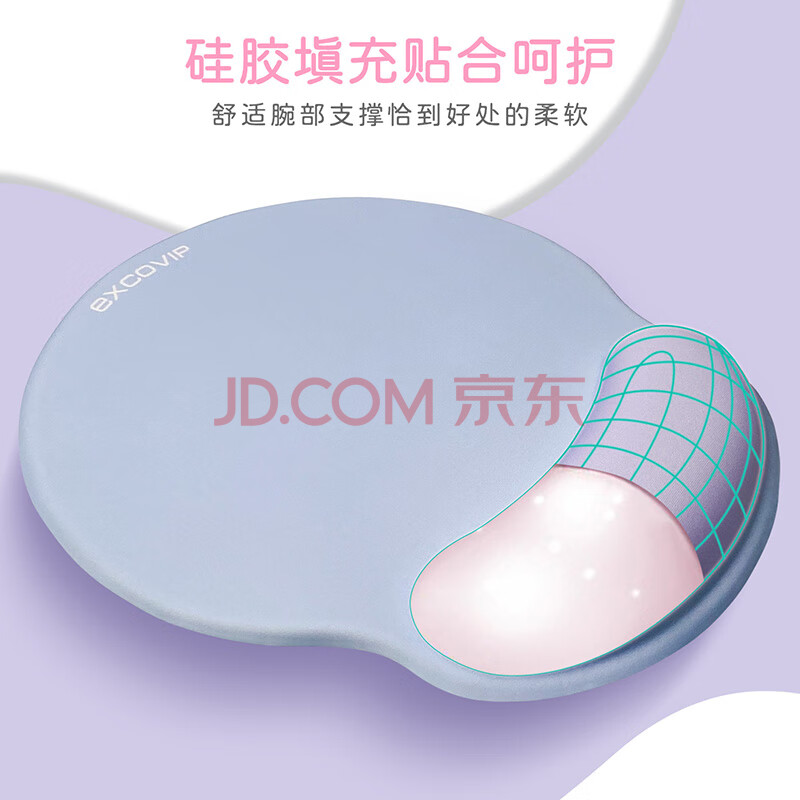 商品相册:宜适酷(EXCO)蓝+紫拼色护腕鼠标垫 护手腕垫大号女生硅胶柔软手托电脑办公鼠标腕托加厚男生电竞游戏桌垫 9901第