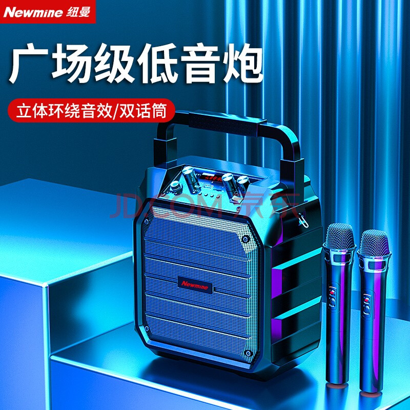 商品相册:纽曼k98无线蓝牙音箱户外大音量广场舞音响小型家用收音机手提便携式带麦克风地摊摆摊喇叭双麦版第