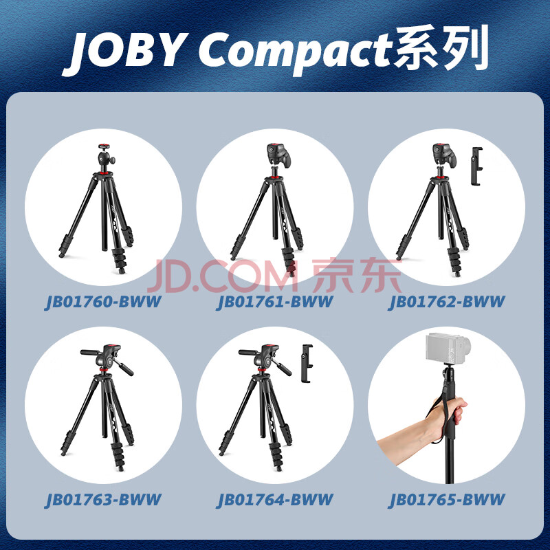 商品相册:宙比(JOBY)JB01764-BWW 专业单反相机三脚架微单相机伸缩可调节铝合金便携支架1.65米兼容索尼佳能承重3KG第