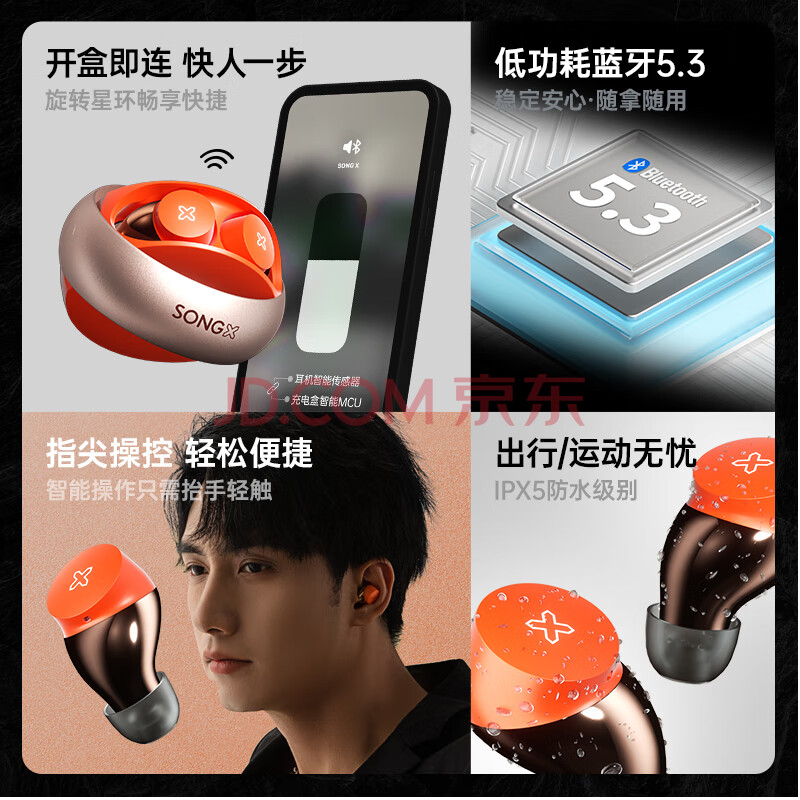 商品相册:SONGX 蓝牙耳机真无线运动音乐耳机蓝牙5.3入耳式通话降噪七夕礼物送女友适用苹果华为小米vivo SX06第