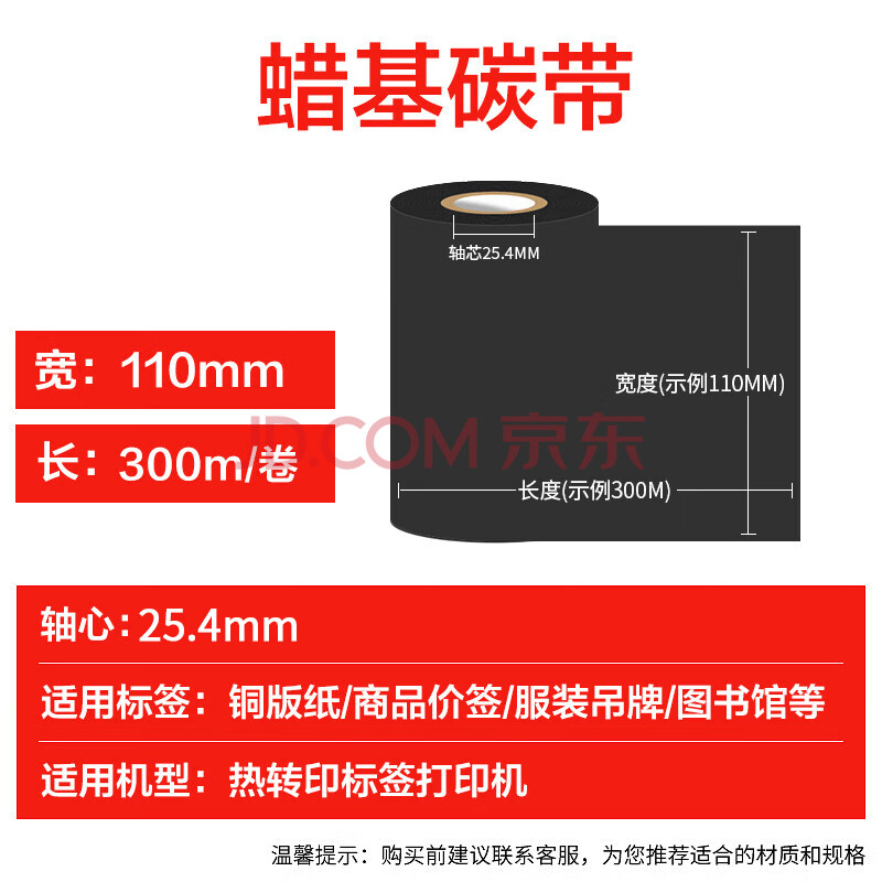 商品相册:e代碳带 110mm*300m蜡基碳带 碳带卷 适用tsc台半ttp-244pro热转印打印机标签机条码机色带第
