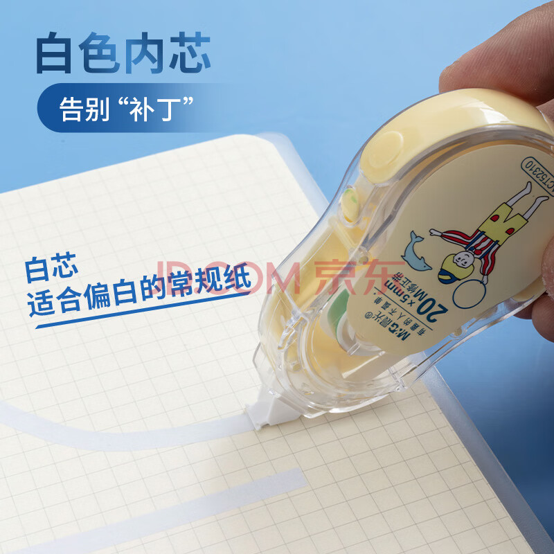 商品相册:晨光(M&G)文具20m*5mm学生修正带 作业隐形涂改带 视觉系列小清新改正带 单支装颜色随机第1张/共6
