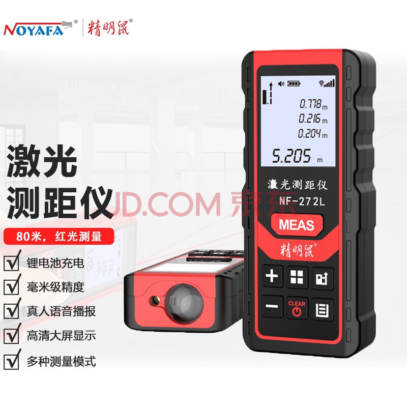 商品相册:精明鼠NF-272L 80米充电语音款 手持式激光测距仪 电子水平泡红外线测量仪 量房仪 电子尺 测量工具第