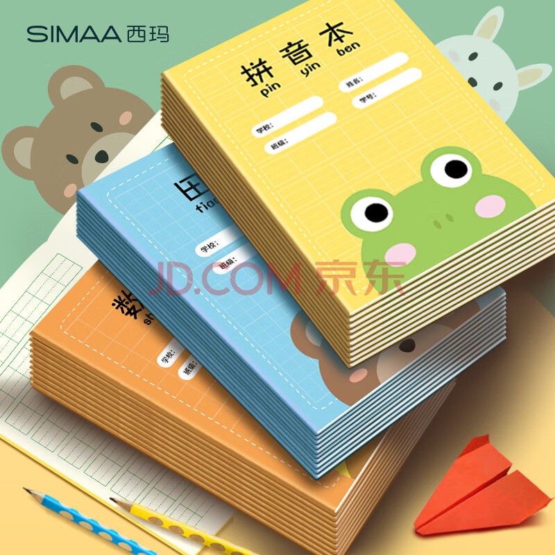 商品相册:西玛(SIMAA)10本装 36K/14张小学生拼音本语文汉字练习 卡通软抄笔记薄作业记事本子文具XQ36K1第