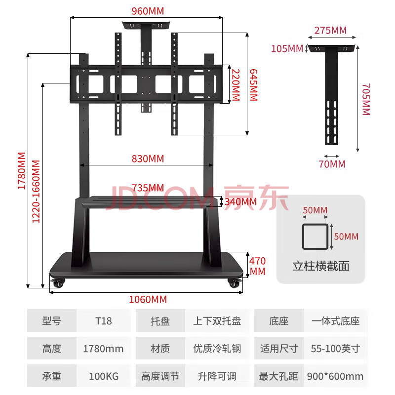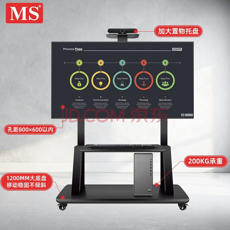商品相册:MS移动电视支架 55-100英寸 落地电视挂架电视推车 视频会议显示屏推车小米海信创维飞利浦通用 T18第