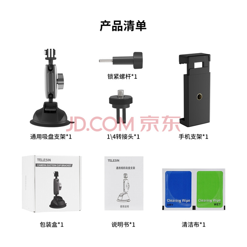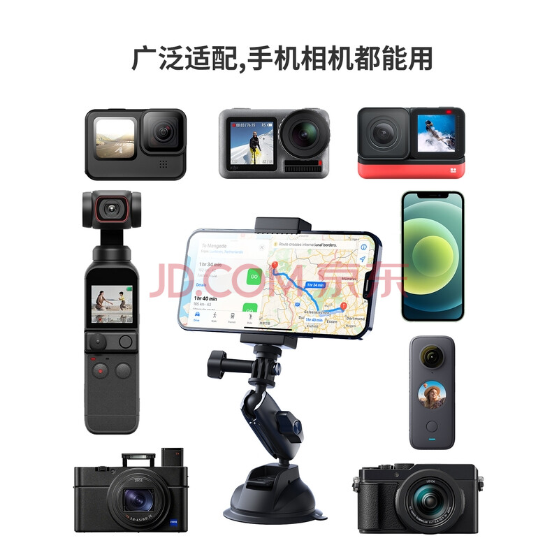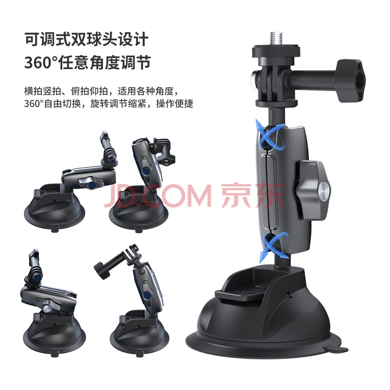 商品相册:TELESIN(泰迅)运动相机吸盘 适配大疆action4 5pro 6车载吸盘gopro车载拍摄支架acepro2吸盘支架 铝合金第