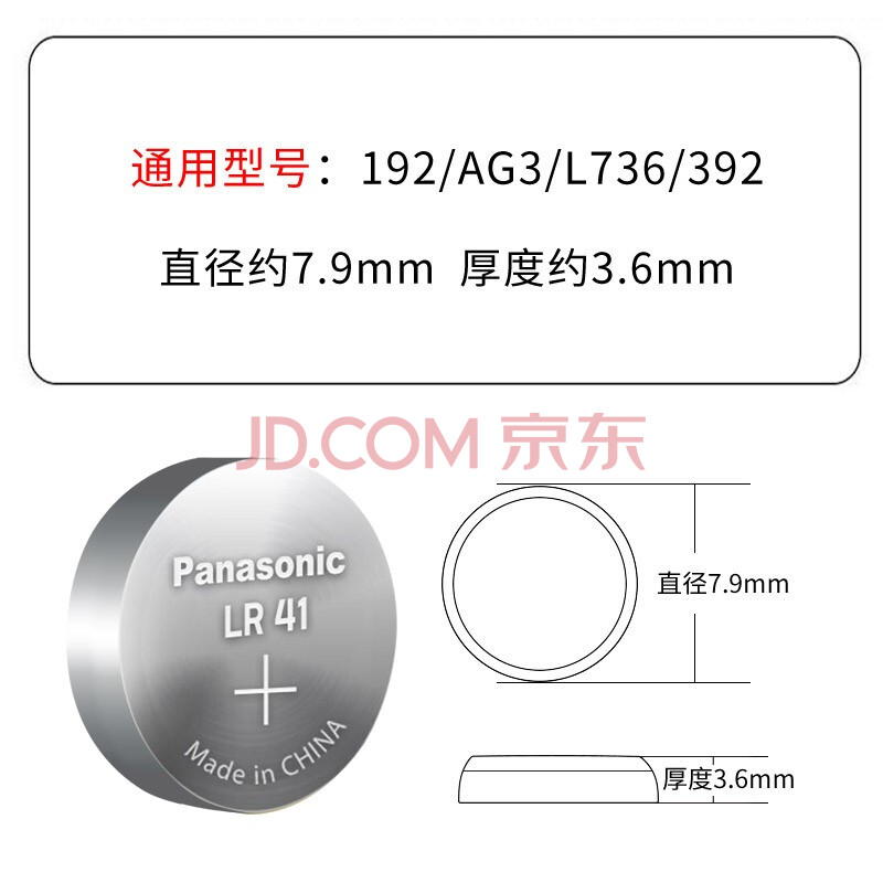 商品相册:松下(Panasonic)LR41碱性纽扣电池10粒192/AG3/L736/392适用电子手表体温计计算器第