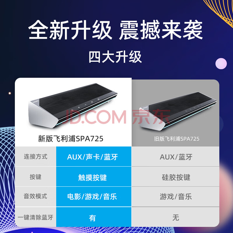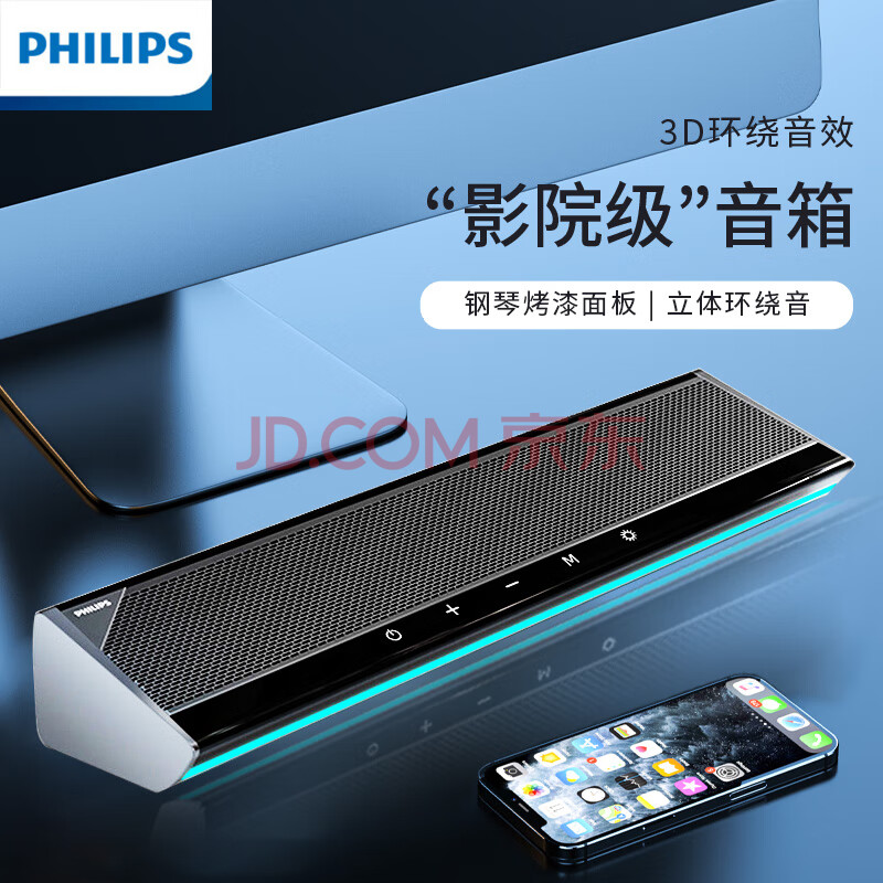 商品相册:飞利浦(PHILIPS)SPA725电脑音响台式机家用桌面笔记本有线音箱蓝牙电竞游戏高解析电视HIFI级音质长条音箱第