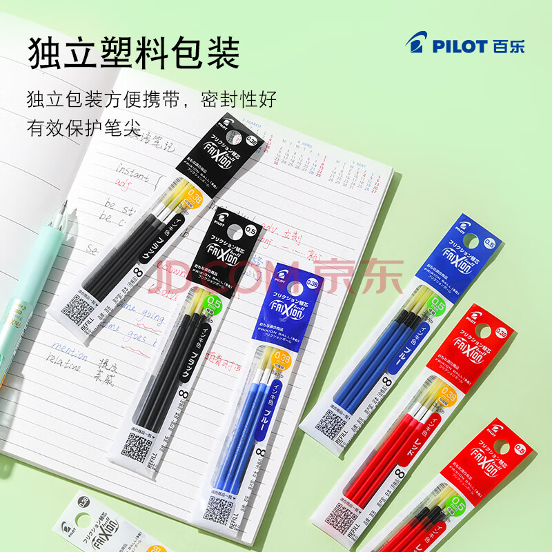 商品相册:百乐(PILOT)可擦多功能笔芯子弹头可擦笔签字笔水笔替芯学生文具办公用品 LFBTRF30UF3C 0.38mm 3色装第1张/共9