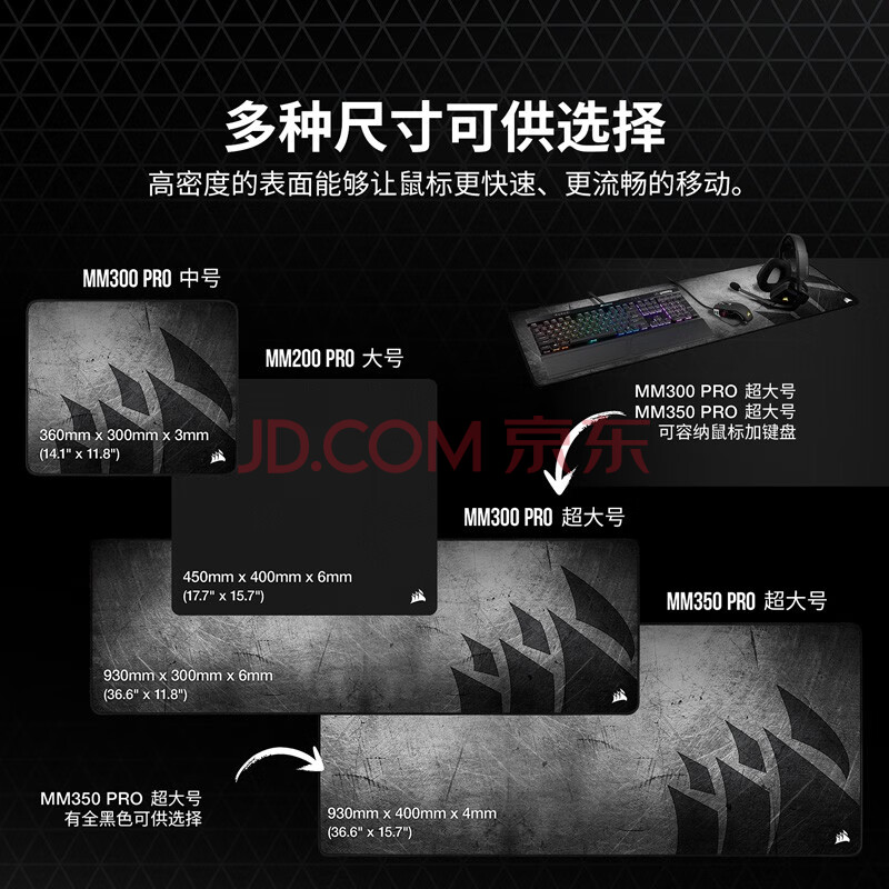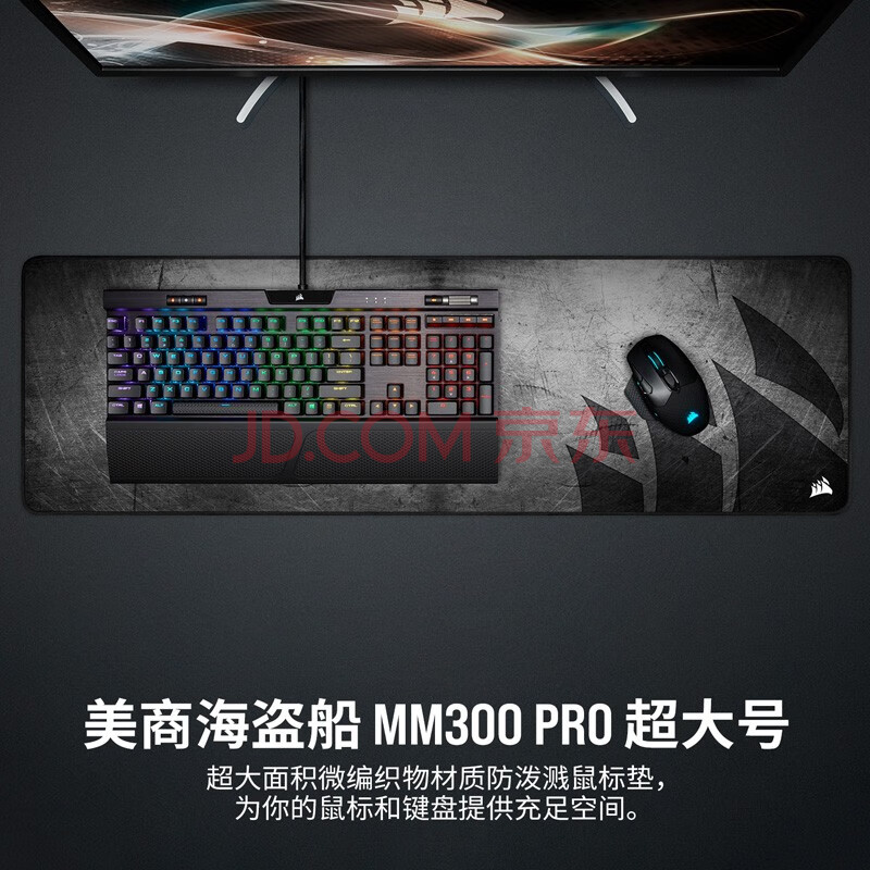 商品相册:美商海盗船 (USCORSAIR) MM300 PRO 超大号 930*300*3mm 高级防泼溅布面游戏鼠标垫 绘制图案第