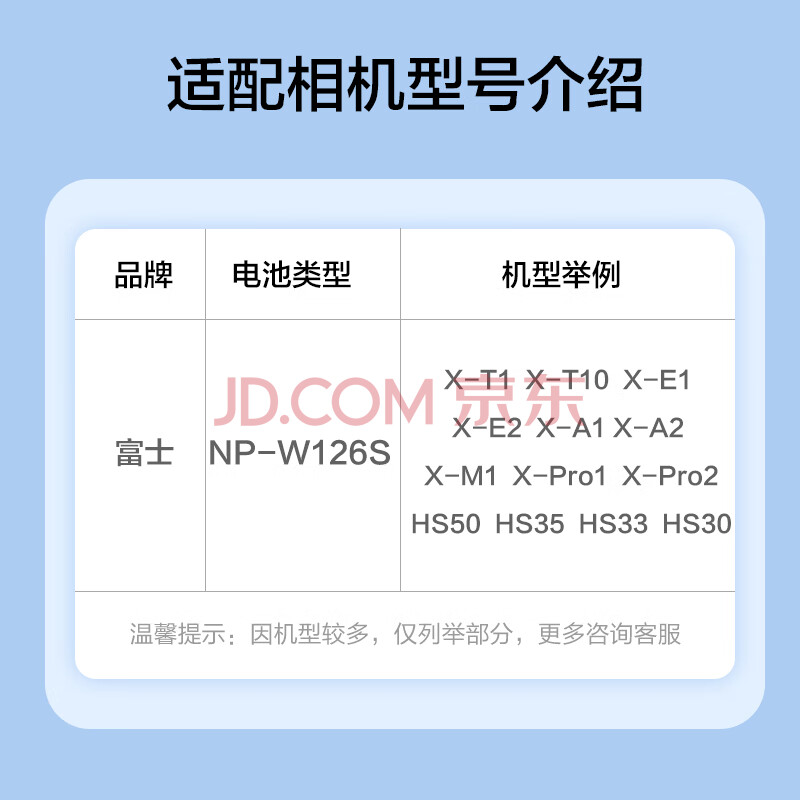 商品相册:品胜(PISEN) W126/W126S富士微单相机电池 XT30二代 XT50 XT2 xt20 XH1 XT20 X100F XA3 XA5 XT30 XT100 XT10 第