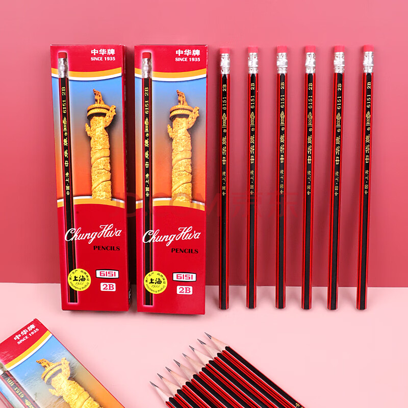 商品相册:中华【热门商品】中华 6151-2B 经典红黑抽条 六角2B学生书写考试铅笔 开学季礼物 12支/盒第