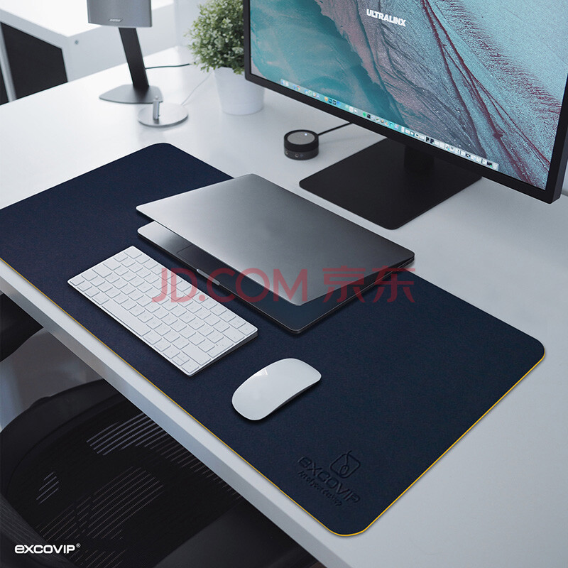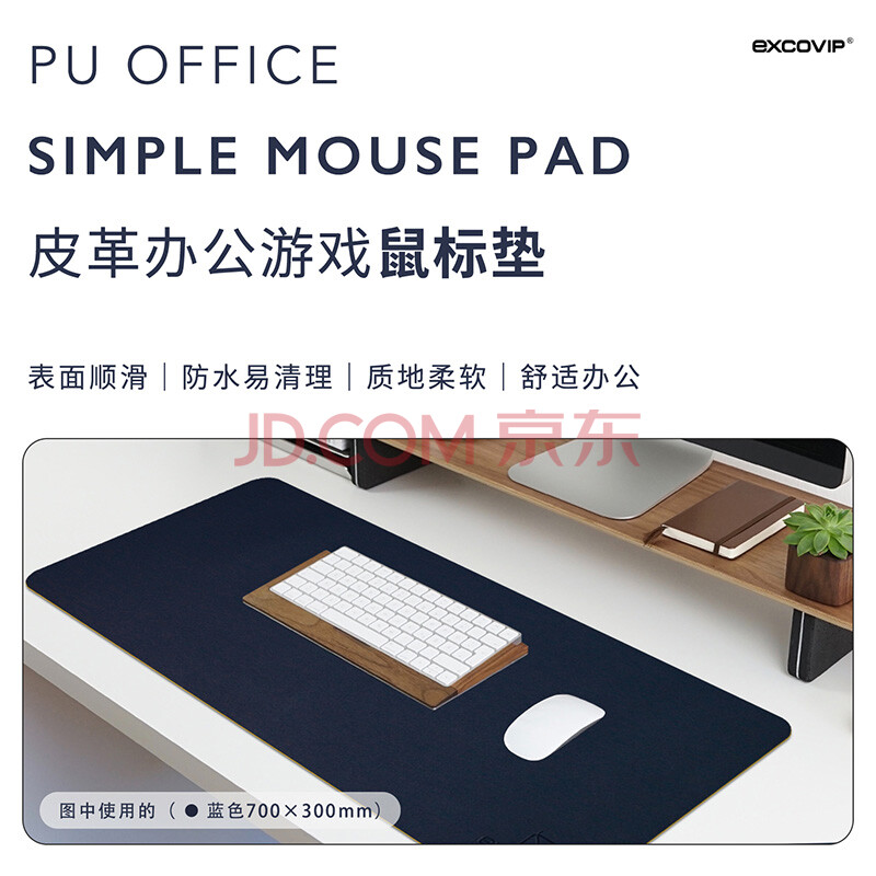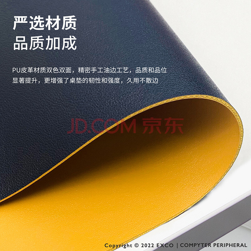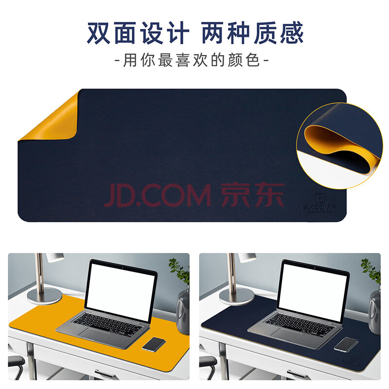 商品相册:宜适酷(EXCO)70X30鼠标垫大号办公桌垫 防水皮革书桌垫写字垫电脑垫键盘皮质桌布垫双面游戏垫 蓝和黄5953第
