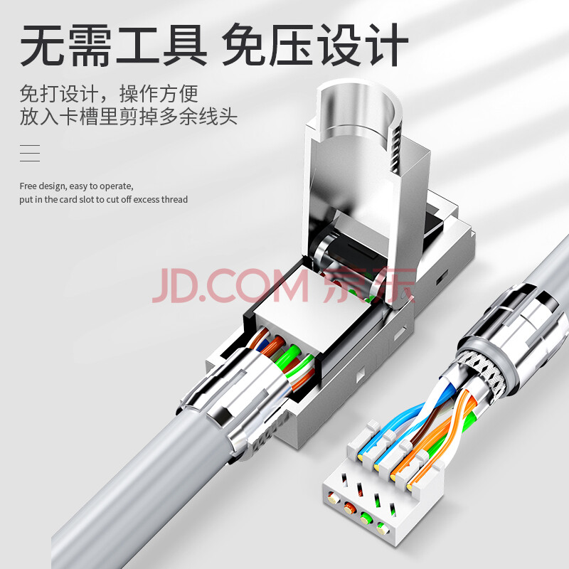 商品相册:山泽 八类屏蔽免打水晶头 工程级CAT8类万兆免压RJ45网络线接头 免工具8类网线连接器 单个装 MDC82第