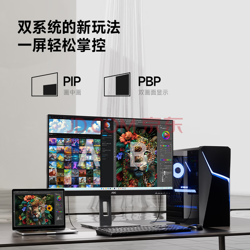 商品相册:AOC显示器 31.5英寸4K超清 Type-C接口 窄边框 旋转升降 TUV低蓝光专业设计办公娱乐电竞显示器U32P2C第