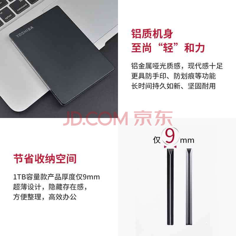 商品相册:东芝(TOSHIBA)2TB 移动硬盘机械 Slim系列 USB3.2 Gen 1 2.5英寸 银色 兼容Mac 金属超薄 密码保护 轻松备份第