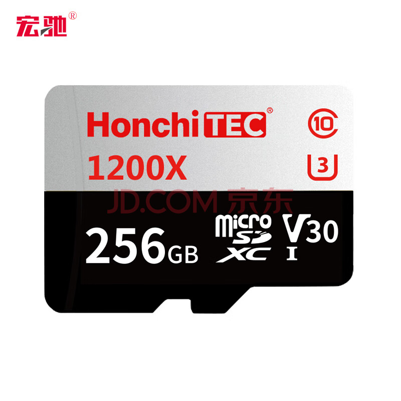 商品相册:宏驰(HONCHITEC)256GB TF(MicroSD)存储卡 U3 C10 V30铂金高速TF卡读速180MB/s写速90MB/s防水耐高温抗震第