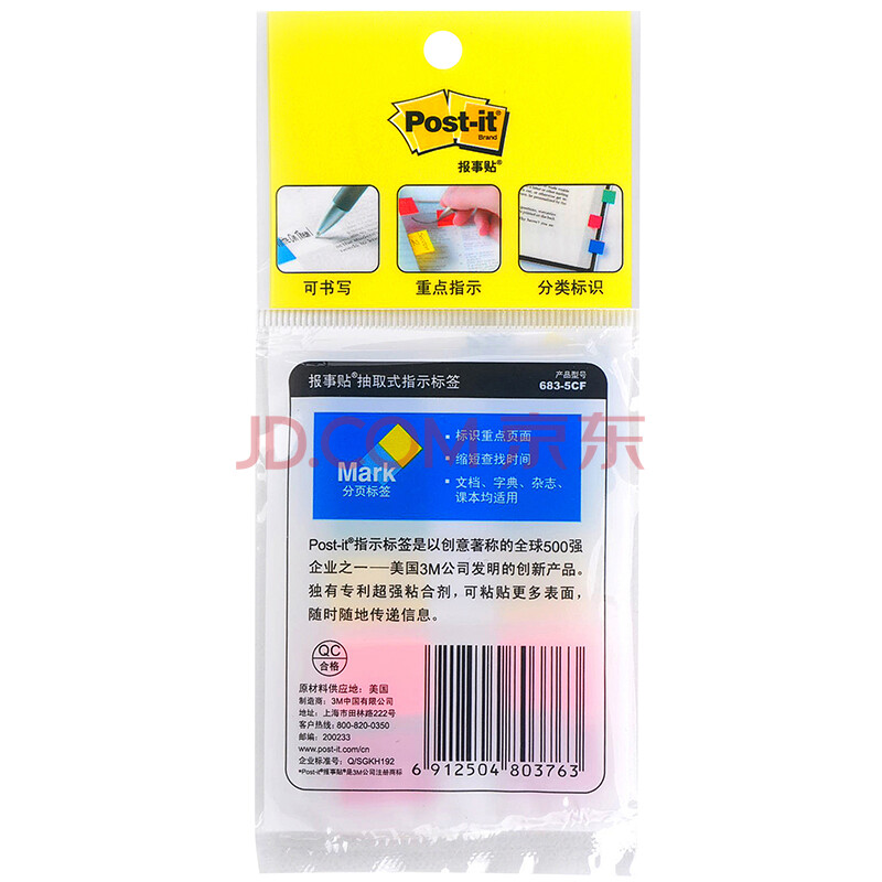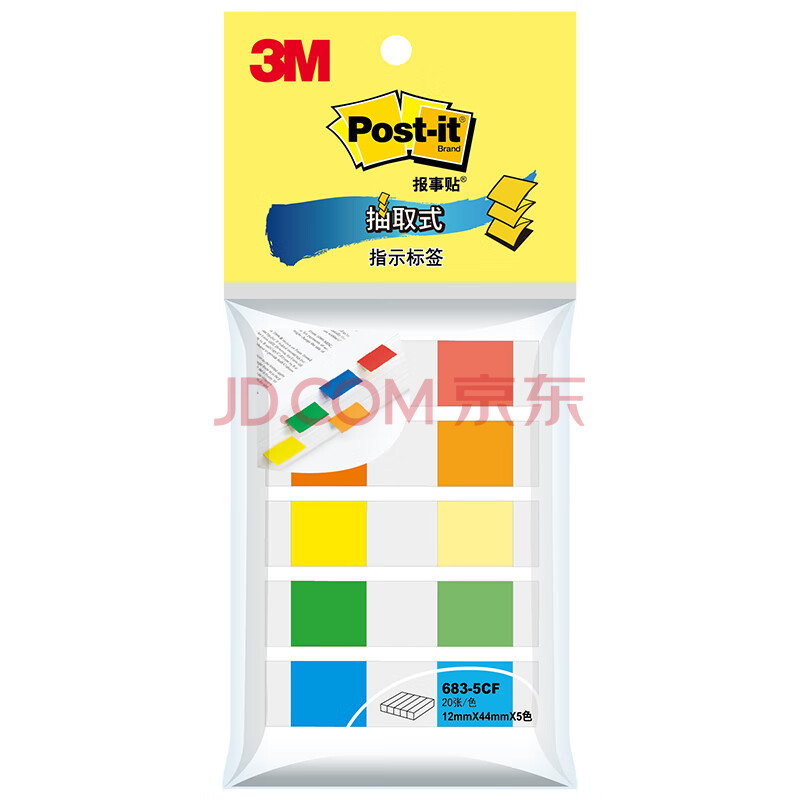 商品相册:3M【全网低价】便签 报事贴/便利贴/便签纸/透明指示标签 办公用品 学习用品文具 683-5CF(5色装)第