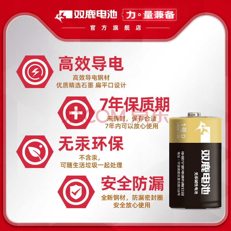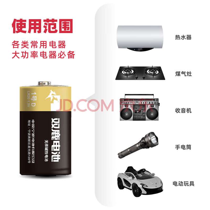 商品相册:双鹿 1号碱性电池2粒卡装 适用于热水器/煤气燃气灶/手电筒/电子琴/收音机 LR20/D型 2粒卡装第
