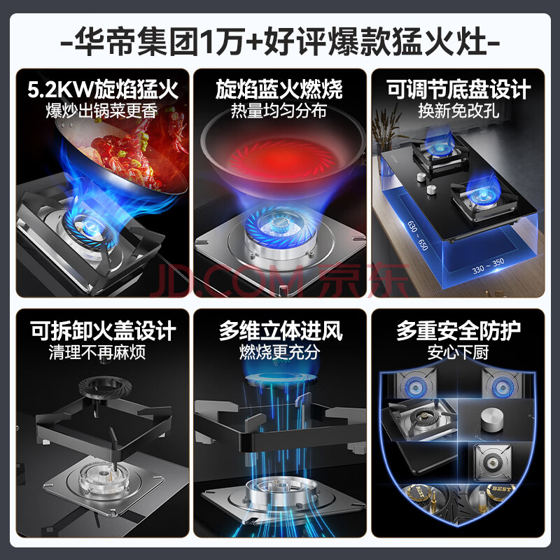 商品相册:百得【华帝出品】5.0KW【液化气】燃气灶JZY-QE52 猛火聚能嵌入式台式两用铝炉头第