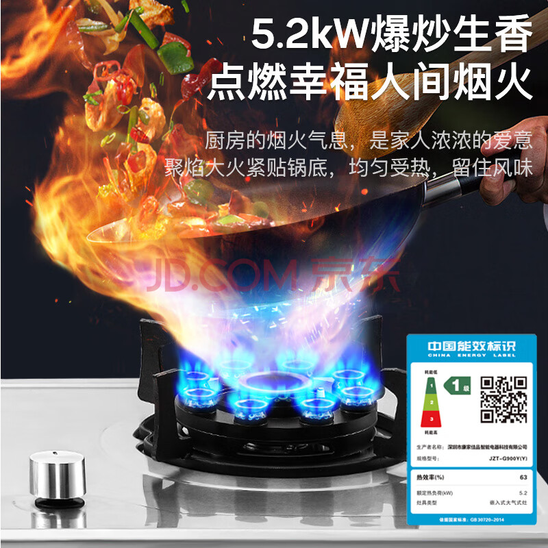 商品相册:康佳(KONKA)燃气灶煤气灶双灶具 5.2kW九腔爆炒文武火鸳鸯灶台式嵌入式 防爆不锈钢上门安装 JZT-G900Y第