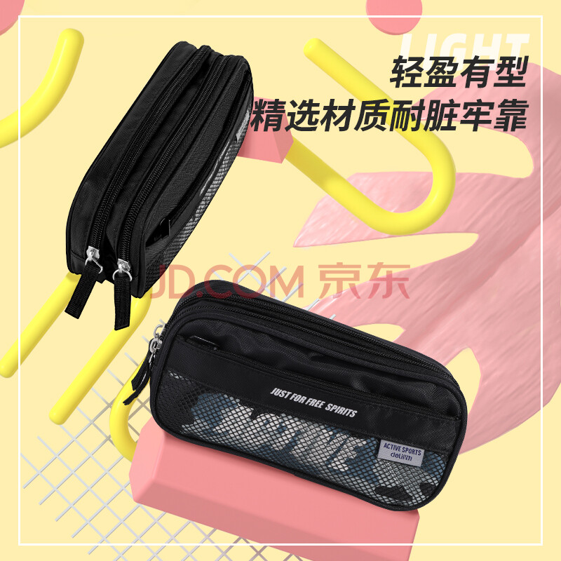 商品相册:得力(deli) 学生运动款笔袋笔袋 大容量时尚袋鼠包文具盒 小学生文具收纳袋 黑色开学必备第