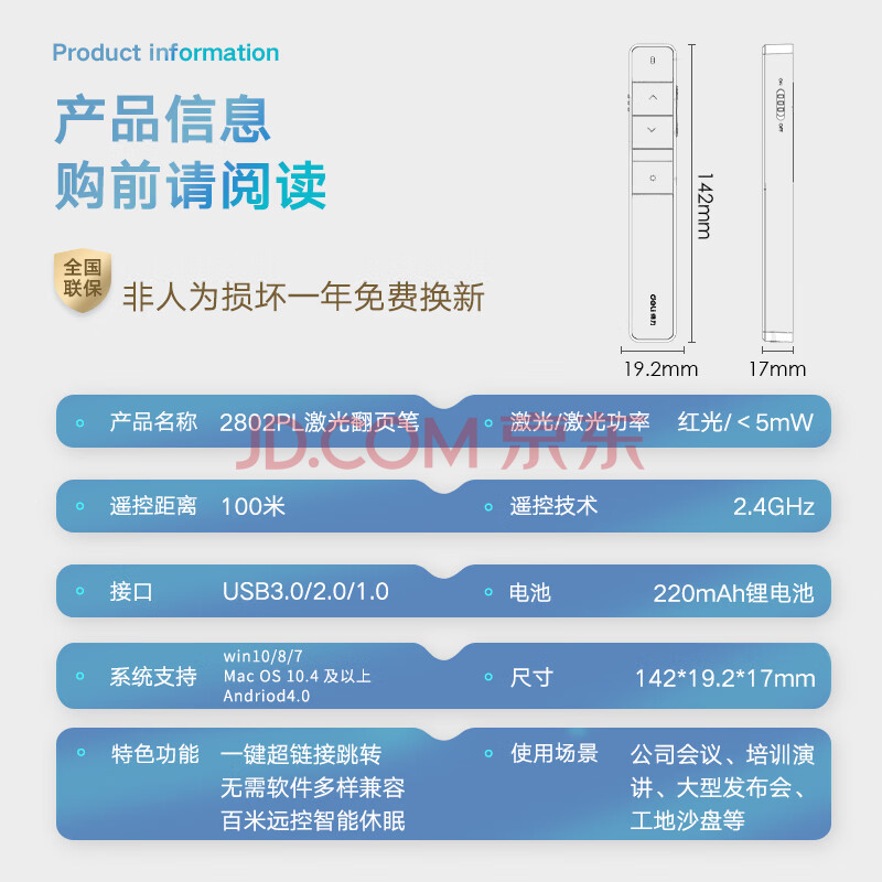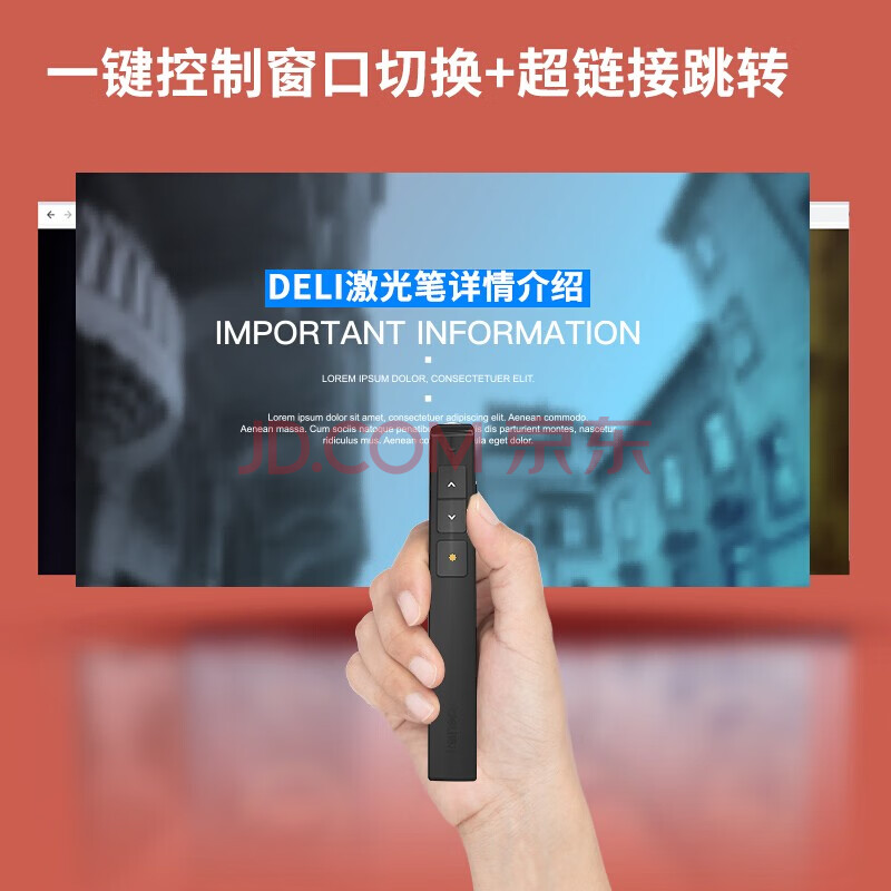 商品相册:得力(deli)激光笔 百米远控教师专用ppt超链切换 激光笔教鞭/无线演示器课件笔 红光激光翻页笔 黑色 2802PL第