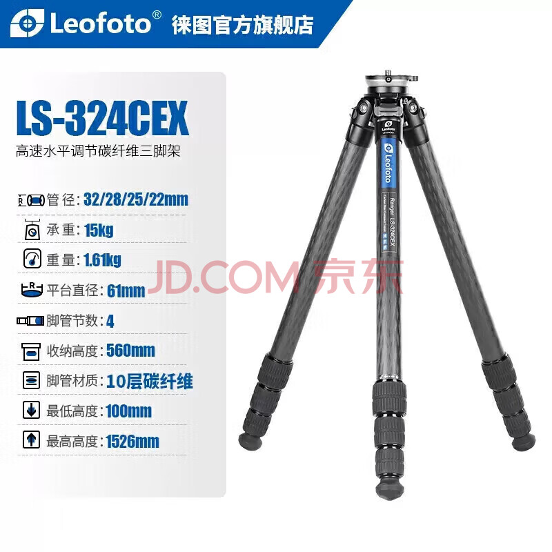 商品相册:徕图(Leofoto)三脚架 快速水平调节摄影摄像机微单单反旅行轻便碳纤维三脚架 LS-324CEX(单脚架)第