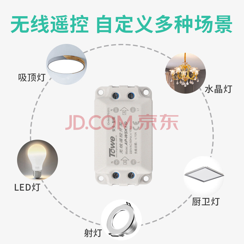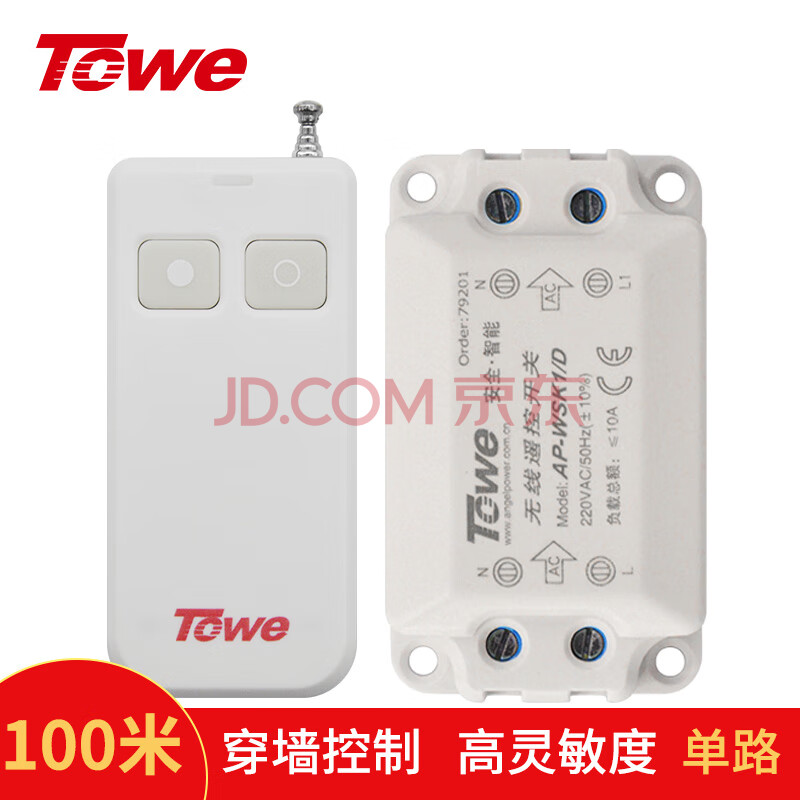商品相册:TOWE同为(TOWE)免布线无线遥控开关220V单路灯具电源遥控制器家用智能无线遥控开关可穿墙第
