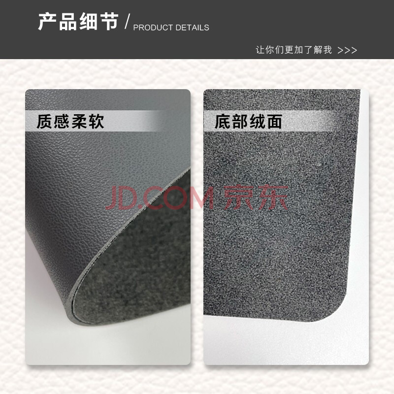 商品相册:飞遁LESAILES单面羊皮革防水鼠标垫超大号 办公电脑书桌垫皮质 防滑绒面底1.2米灰黑1200*600*1.8第