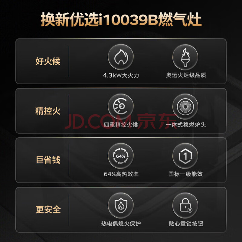 商品相册:华帝燃气灶液化气专用嵌入式4.3kW大火力煤气灶双灶台灶具i10039B【液化气商品】第
