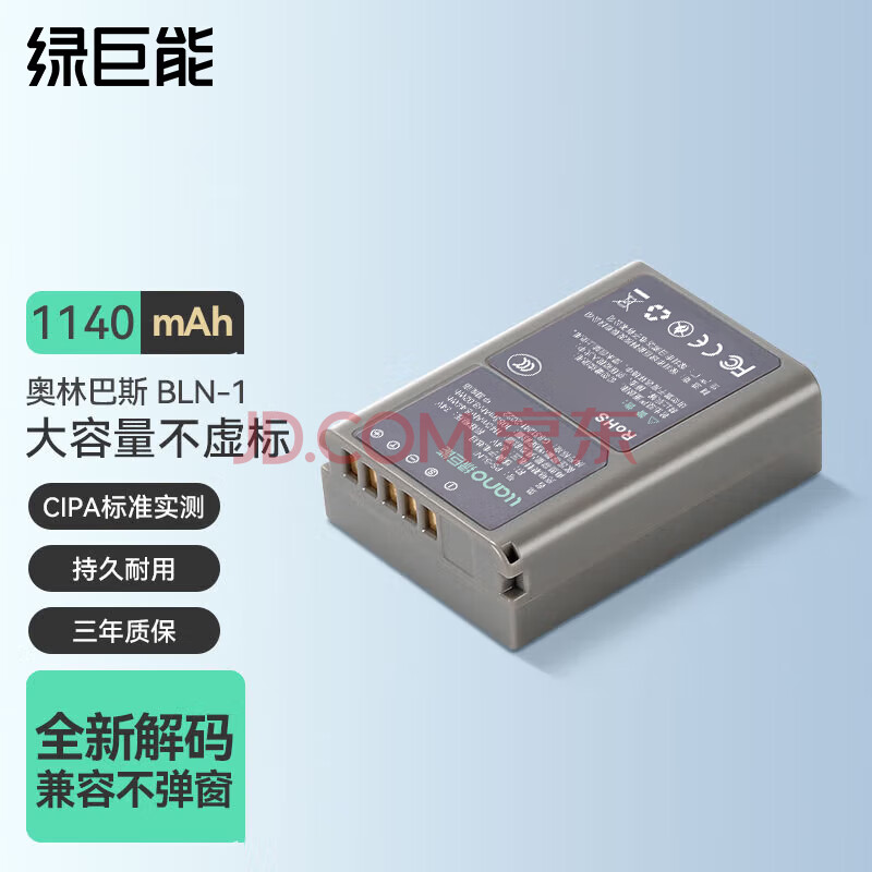 商品相册:绿巨能(llano)适用奥林巴斯E-M5 MARK II相机BLN-1电池OLYMPUS EM1/EP5/PEN-F/E-P5等相机电池第