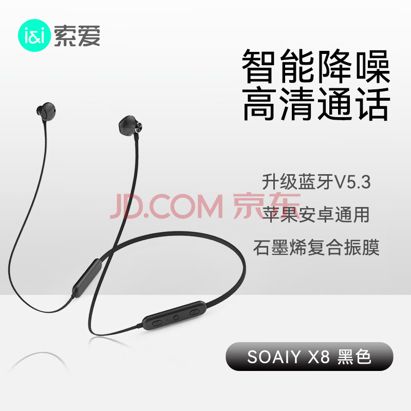商品相册:索爱(soaiy) X8无线蓝牙耳机 颈挂式跑步运动音乐耳机半入耳长续航耳麦 适用于苹果安卓华为手机 黑色第1张/共8
