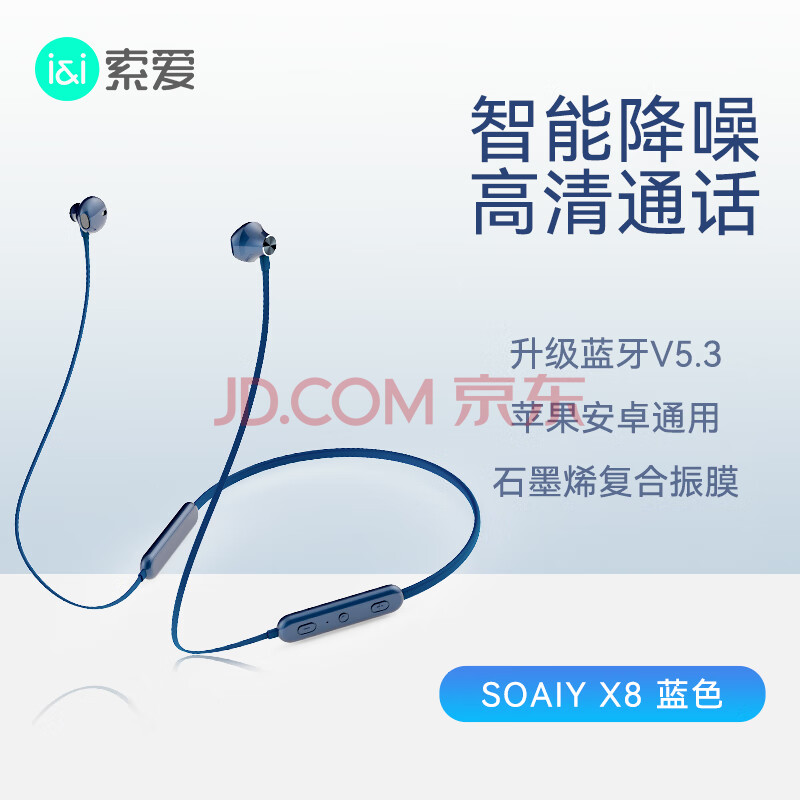 商品相册:索爱(soaiy) X8无线蓝牙耳机 颈挂式跑步运动音乐耳机半入耳长续航耳麦 适用于苹果安卓华为手机 蓝色第
