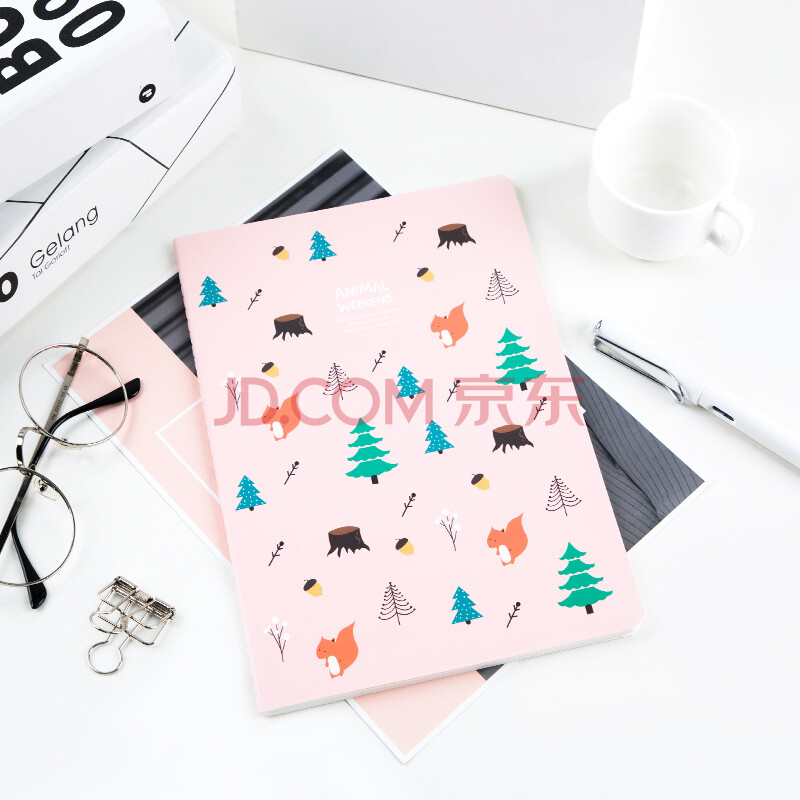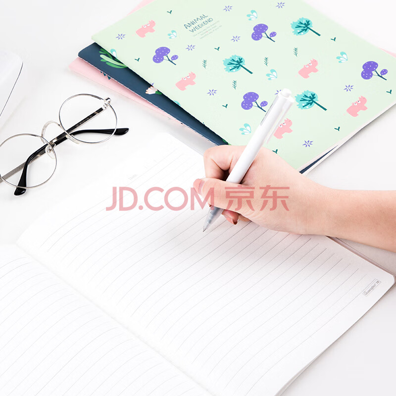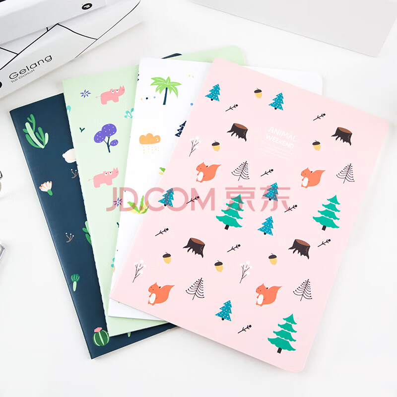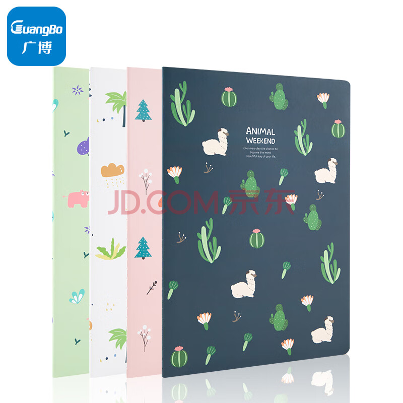 商品相册:广博(GuangBo)B5笔记本子文具软抄本 卡通缝线学生记事本 动物周末 40张4本装 FB62100第