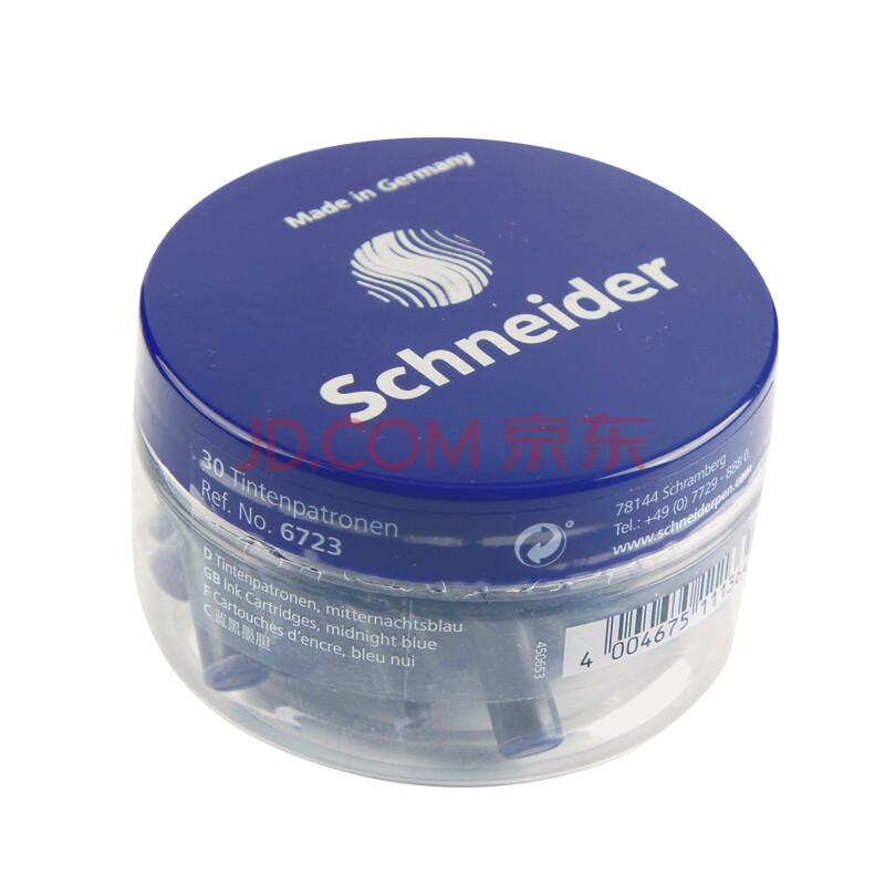 商品相册:施耐德(Schneider)钢笔墨囊墨水胆非碳素不堵笔德国进口欧标钢笔适用开学必备用品30支瓶装 蓝黑色6723第