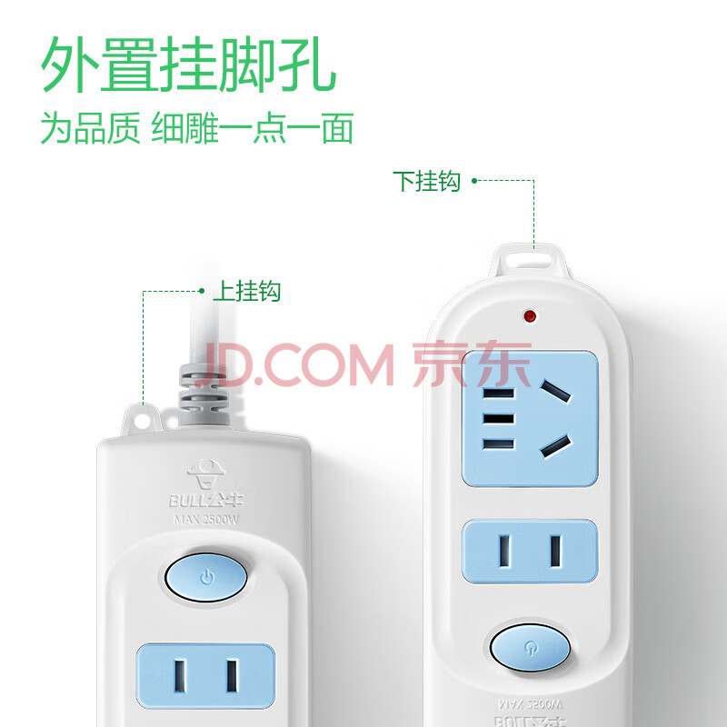 商品相册:公牛(BULL)插座/插线板/插排/排插/接线板/拖线板 2位总控全长1.8米 GN-612第