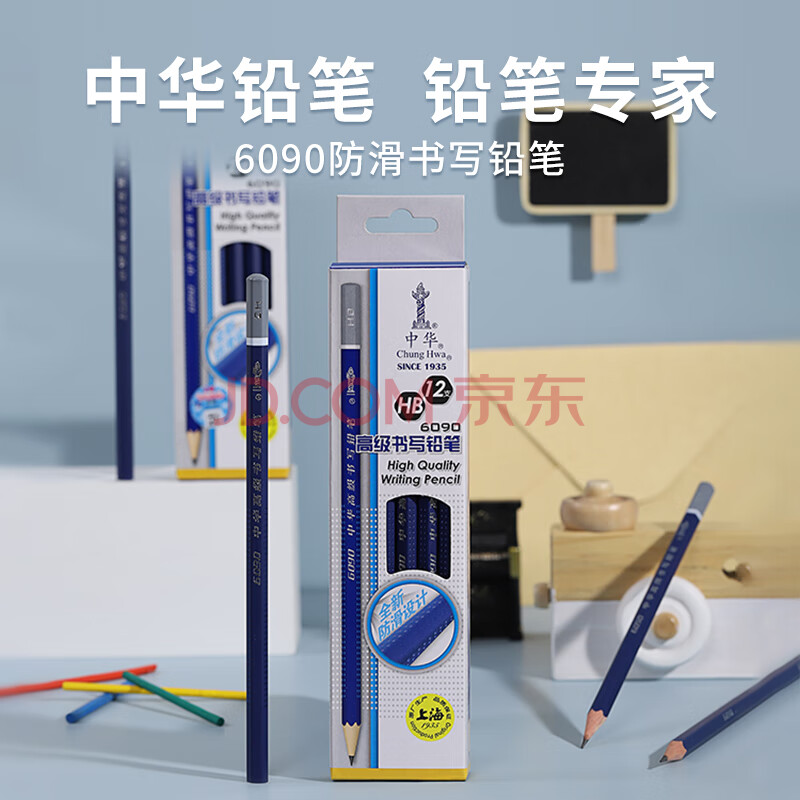 商品相册:中华【热门商品】中华 6090 学生防滑书写铅笔HB办公书写铅笔 铅笔小学生专用 儿童节礼物 12支/盒第