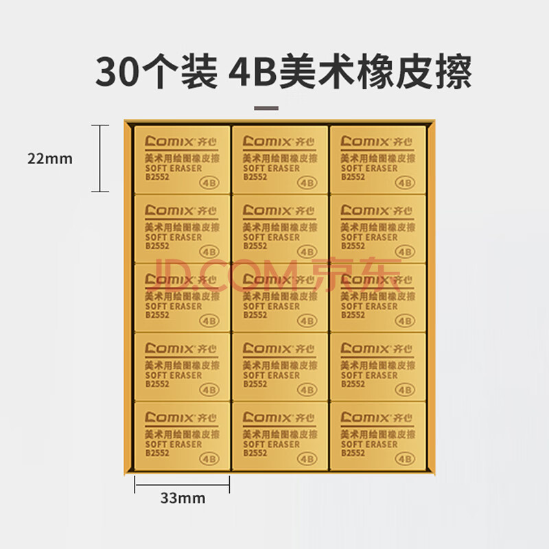 商品相册:齐心(Comix)4B橡皮擦 30块装美术绘画考试橡皮文具 学生用品棕色小号B2552第
