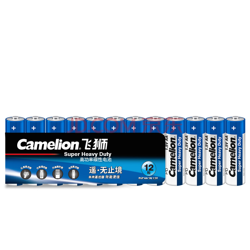 商品相册:飞狮(Camelion)碳性电池 干电池 R6P/AA/5号 电池 12节 低耗玩具/遥控器/收音机/闹钟/手电筒第