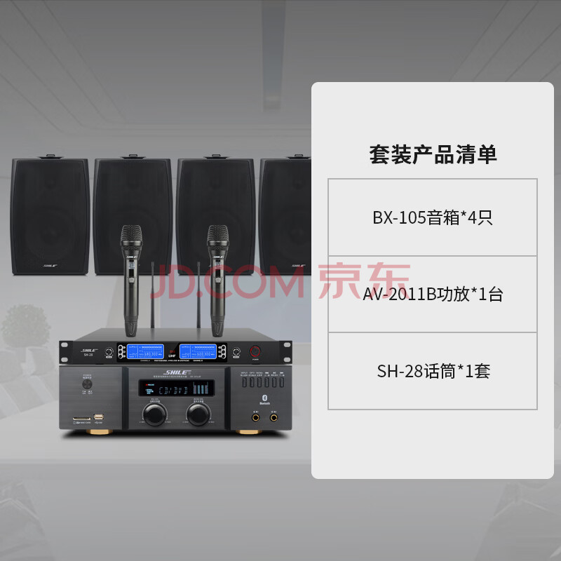 商品相册:狮乐(SHILE)会议室音响套装组合 USB蓝牙功放壁挂音响真U段无线话筒会议店铺背景音乐 2011B+28+105*4第1张/共8