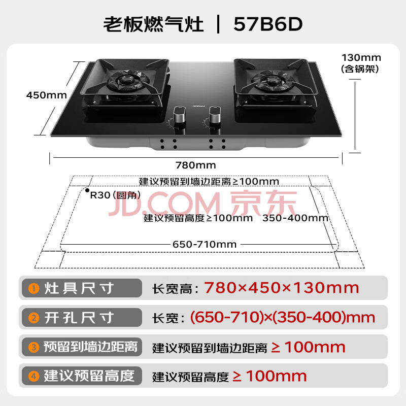 商品相册:老板(Robam)【推荐5B0X1爆款灶】JZT-57B6D天然气家用燃气灶嵌入式煤气灶5.2kW上门安装第