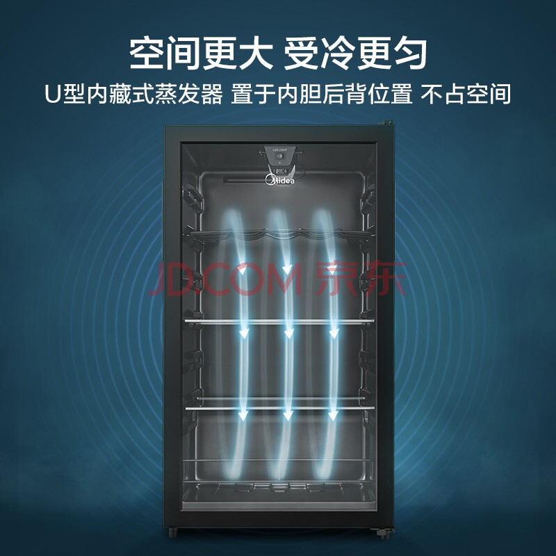 商品相册:美的(Midea)95升冰吧冷藏家用客厅小冰箱办公室冰吧茶叶饮料水果蔬菜保鲜柜红酒柜JC-98GM(E)第