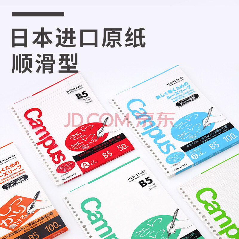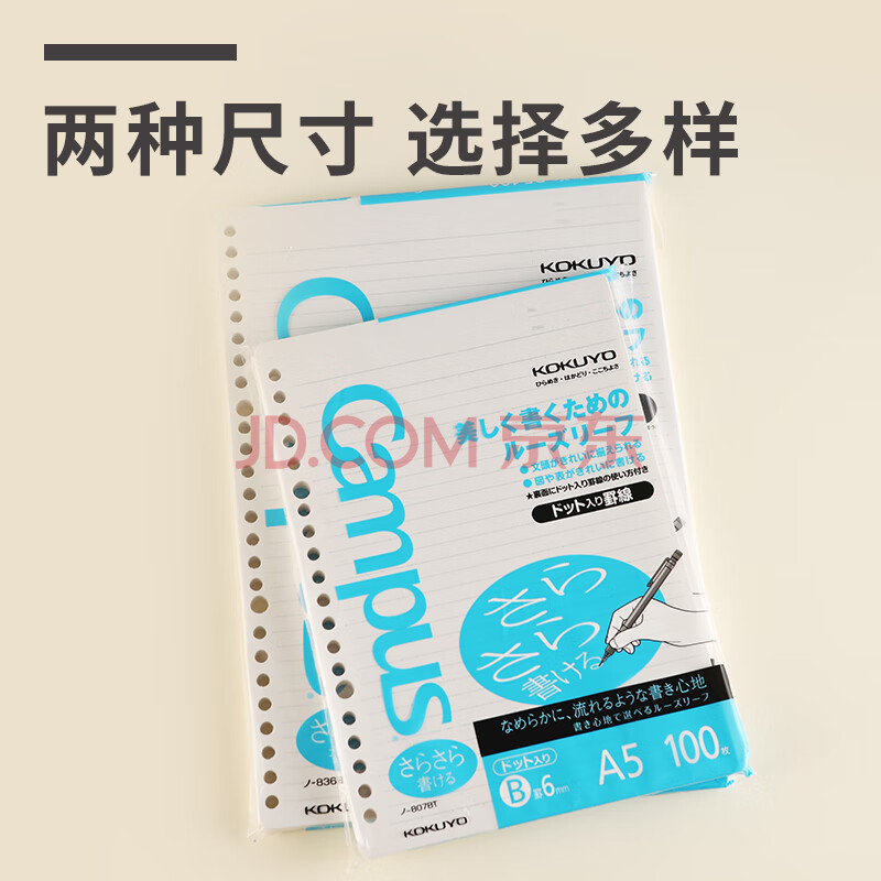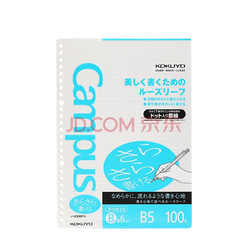 商品相册:国誉(KOKUYO)进口活页纸B5活页本替芯笔记本子内页顺滑型 6mm点线*36行 100张1本 NO-836BTN第