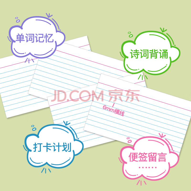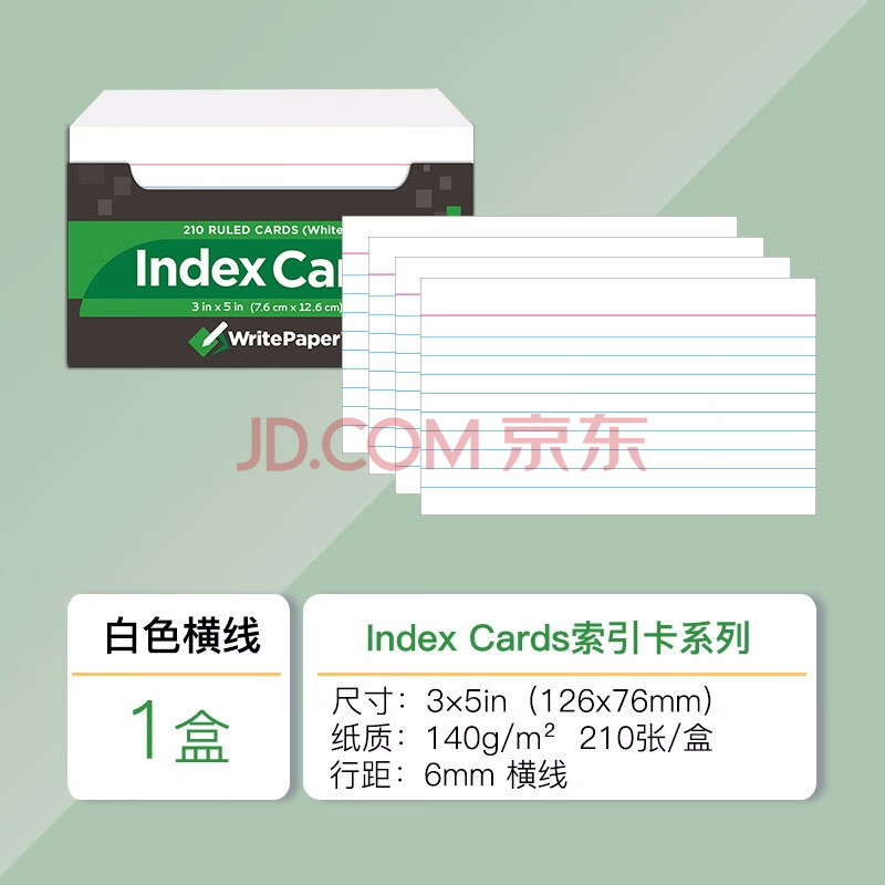 商品相册:凯萨(KAISA)【全网热卖】白色横线索引卡 210张盒装便签纸留言卡片纸书签索引标签便携单词学习卡第