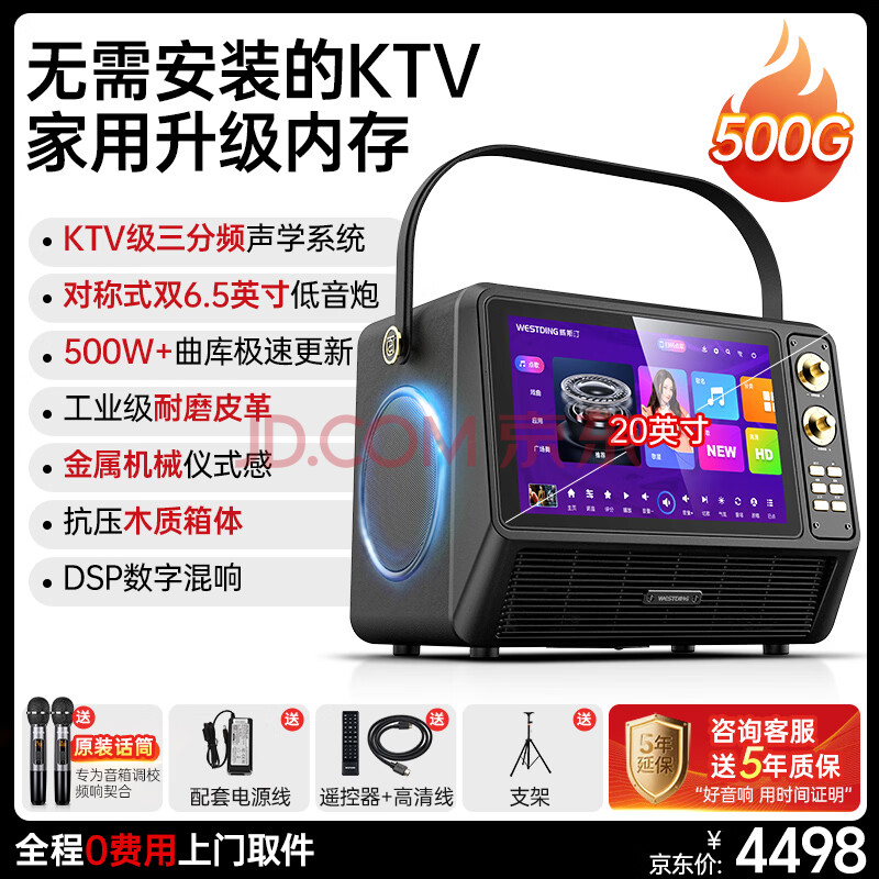 商品相册:威斯汀ktv音响家庭k歌一体机 卡拉ok点歌机显示屏 户外便携广场舞蓝牙音箱GLE320-500G家用版第